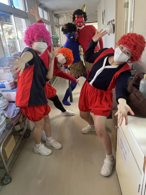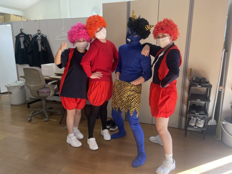 実習中の2年生、実習先の施設で鬼役になりました👹利用者さんも豆まきを楽しんでくださったようです🥰